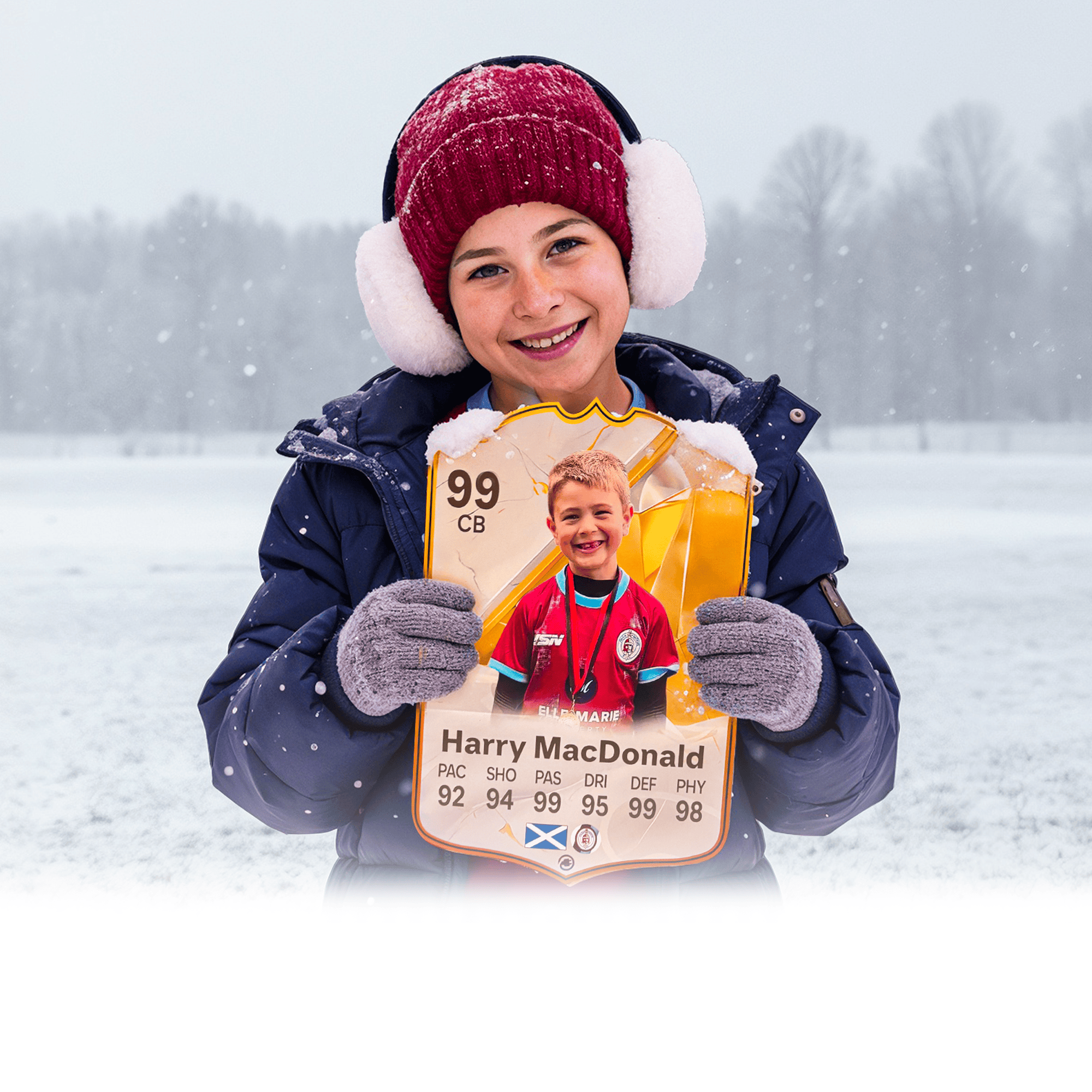 Add your own photo, name, club, and stats with our easy online tool. Our expert designers will do the rest!