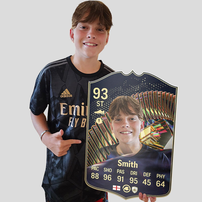 Yes! Our football card designers will remove the background from the photo you upload so it looks just like the football cards you might’ve seen games like EA FC 25, EA FC 24 or FIFA. We’ll also position the photo perfectly on the football card so it looks great. If there are any problems with the quality of your photo, we’ll reach out and let you know. Plus, our website's AI will remove the background on the image for visual purposes before purchase so you can see it without a background on the card.