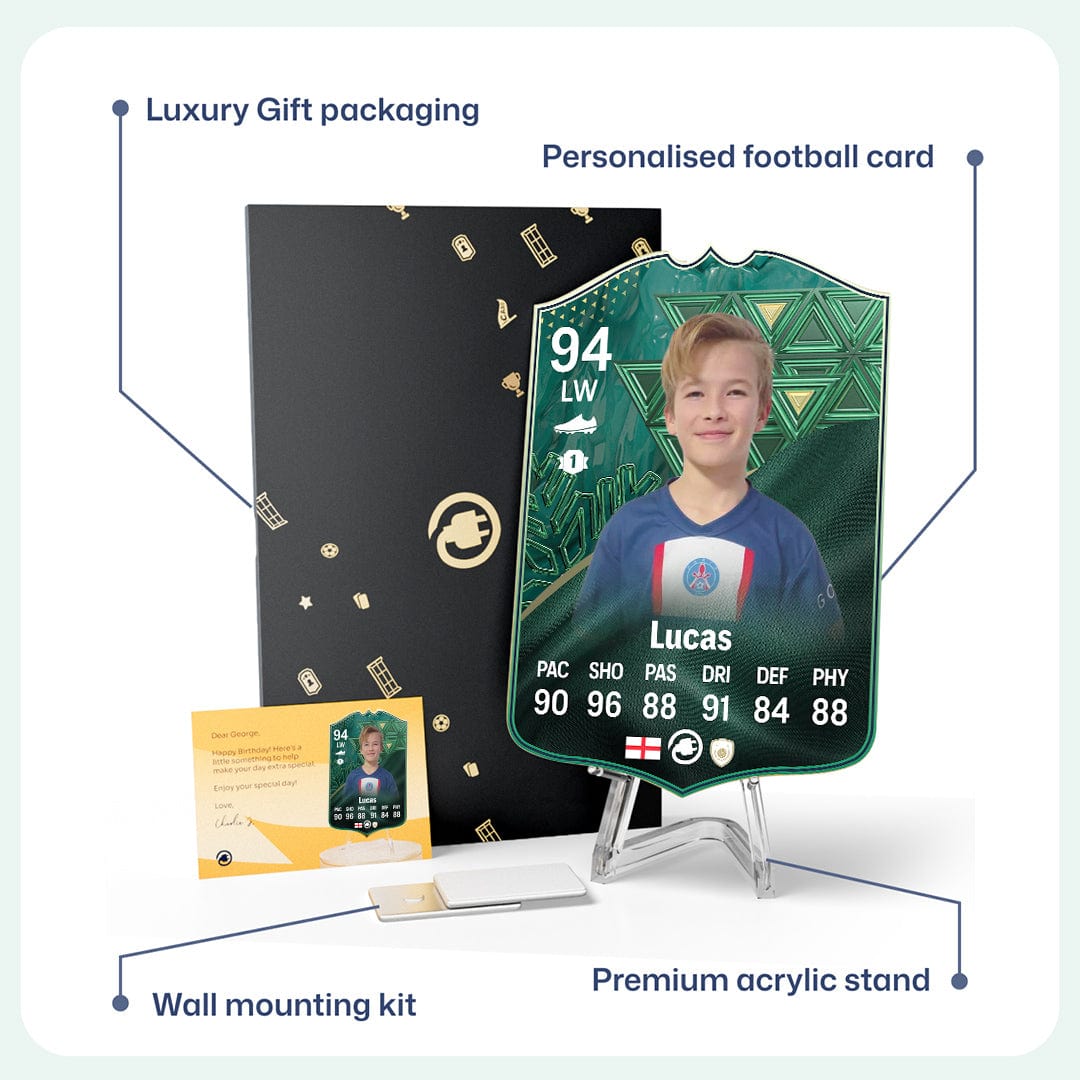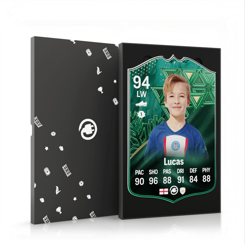 CardsPlug is home to the world’s favourite personalised football cards. Our easy football card builder lets you make a real life football card with your own name, photo, and skill ratings. With 100+ designs to choose from and some inspired by EA SPORTS FC 26 cards seen in EA FC 26, EA FC 25 and FC 24 as well as FIFA cards seen in games like FIFA 23 and FIFA 22.