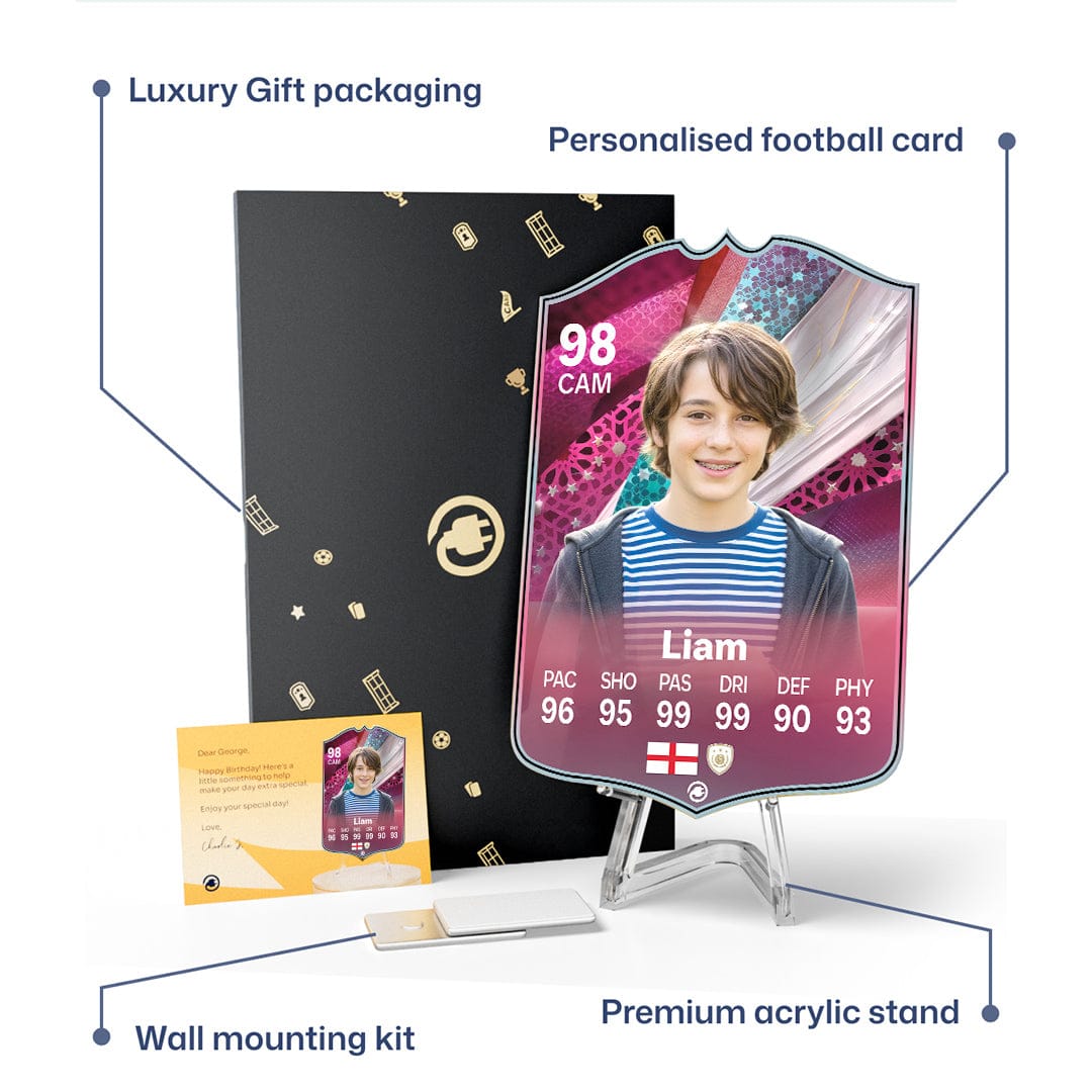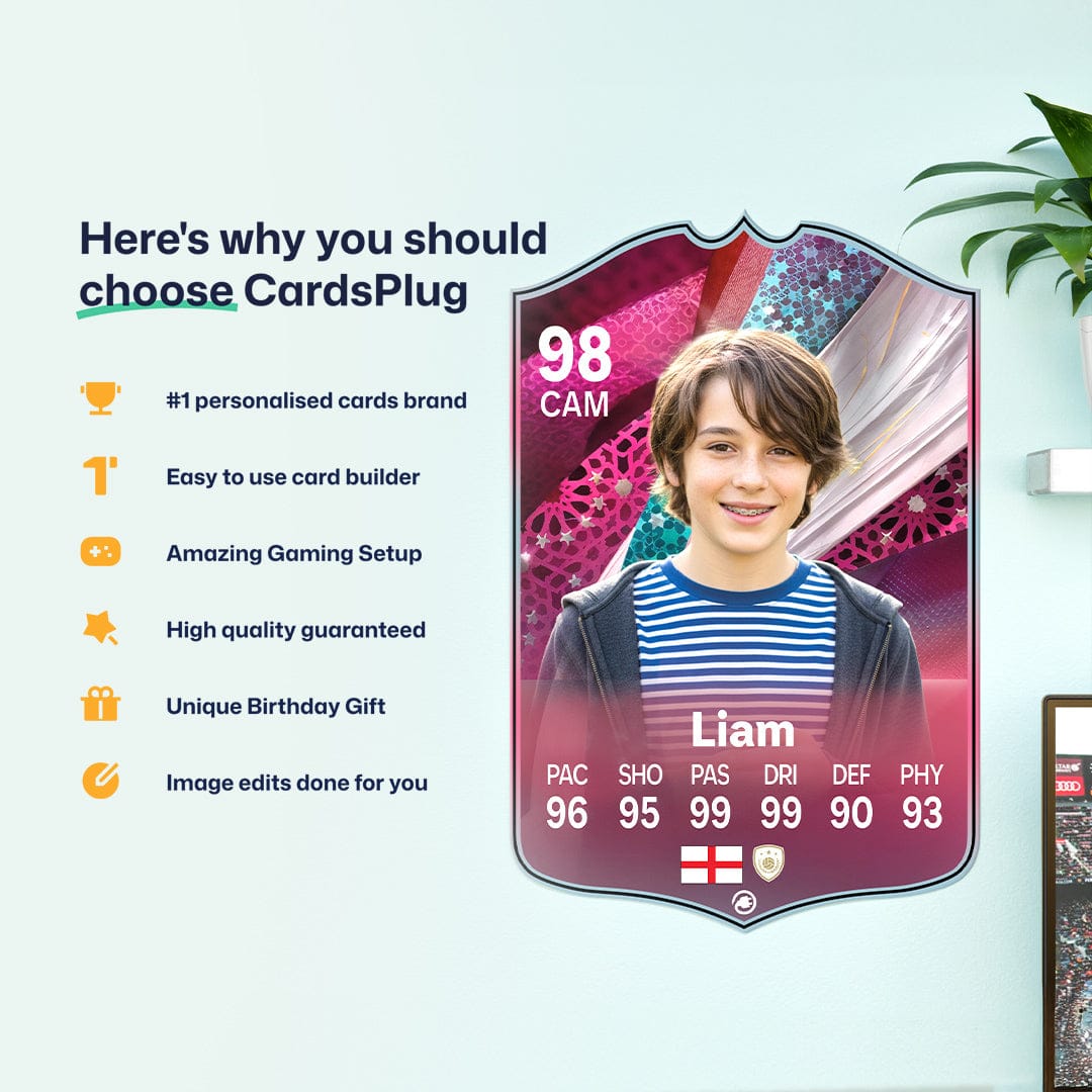CardsPlug is home to the world’s favourite personalised football cards. Our easy football card builder lets you make a real life football card with your own name, photo, and skill ratings. With 100+ designs to choose from and some inspired by EA SPORTS FC 26 cards seen in EA FC 26, EA FC 25 and FC 24 as well as FIFA cards seen in games like FIFA 23 and FIFA 22.