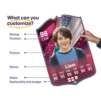 When it comes to personalising your card, the basic steps are to upload a photo and add a name to your card. Then you’ll add details like your player’s position and skill ratings out of 99 for each football skill shown on the card. Our online card builder makes this really easy. And if you aren’t a football card expert, don’t worry!