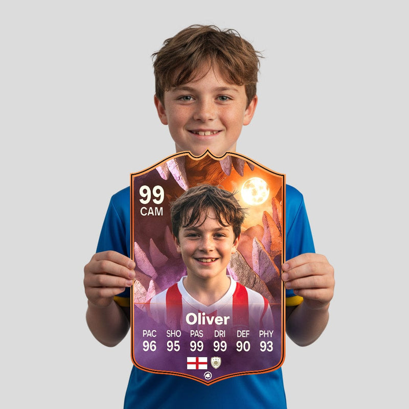 CardsPlug is home to the world’s favourite personalised football cards. Our easy football card builder lets you make a real life football card with your own name, photo, and skill ratings. With 100+ designs to choose from and some inspired by EA SPORTS FC 26 cards seen in EA FC 26, EA FC 25 and FC 24 as well as FIFA cards seen in games like FIFA 23 and FIFA 22.