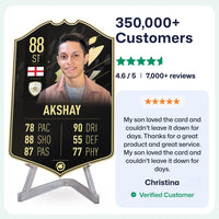 CardsPlug is home to the world’s favourite personalised football cards. Our easy football card builder lets you make a real life football card with your own name, photo, and skill ratings. With 100+ designs to choose from and some inspired by EA SPORTS FC 26 cards seen in EA FC 26, EA FC 25 and FC 24 as well as FIFA cards seen in games like FIFA 23 and FIFA 22.